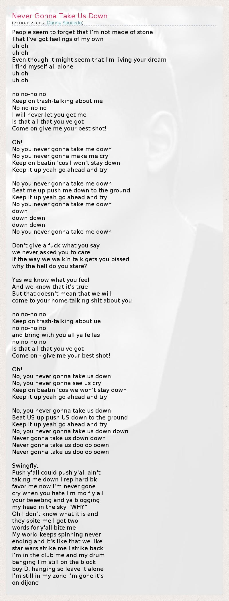 ГлавнаяИсполнителиDanny SaucedoNever Gonna Take Us Down