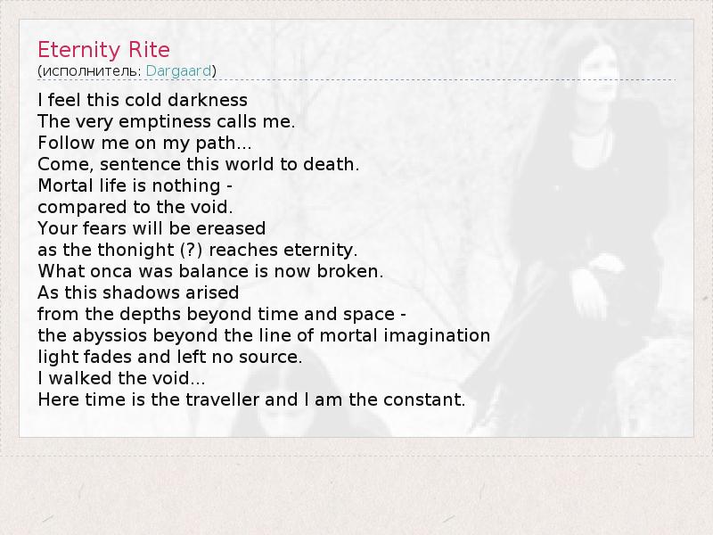А как ты думаешь, о чем песня "Eternity Rite" ?