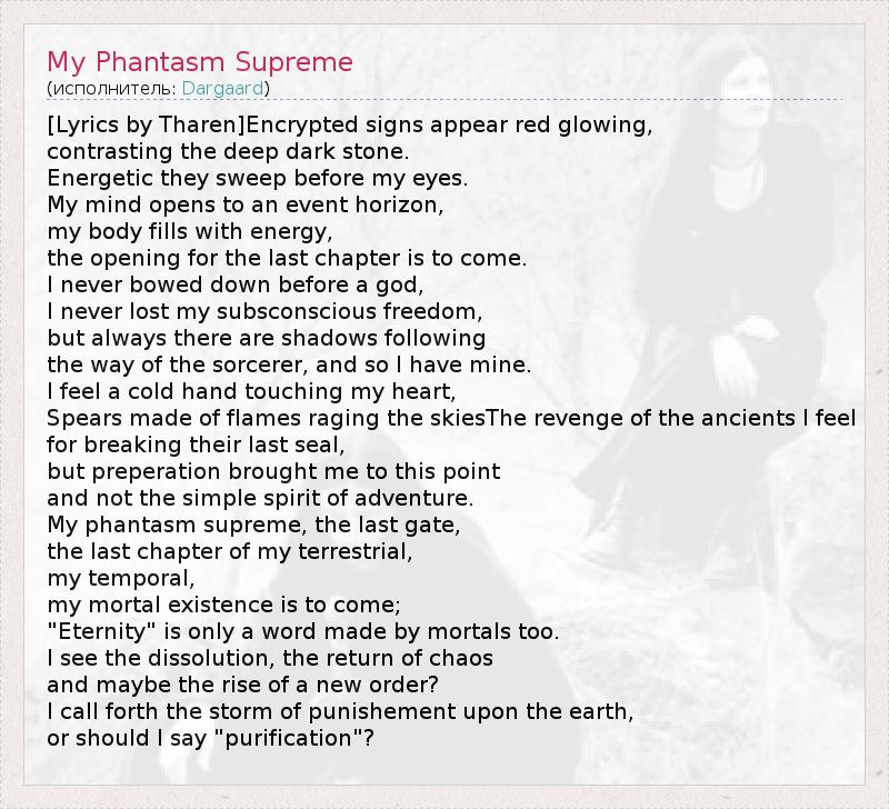А как ты думаешь, о чем песня "My Phantasm Supreme" ?