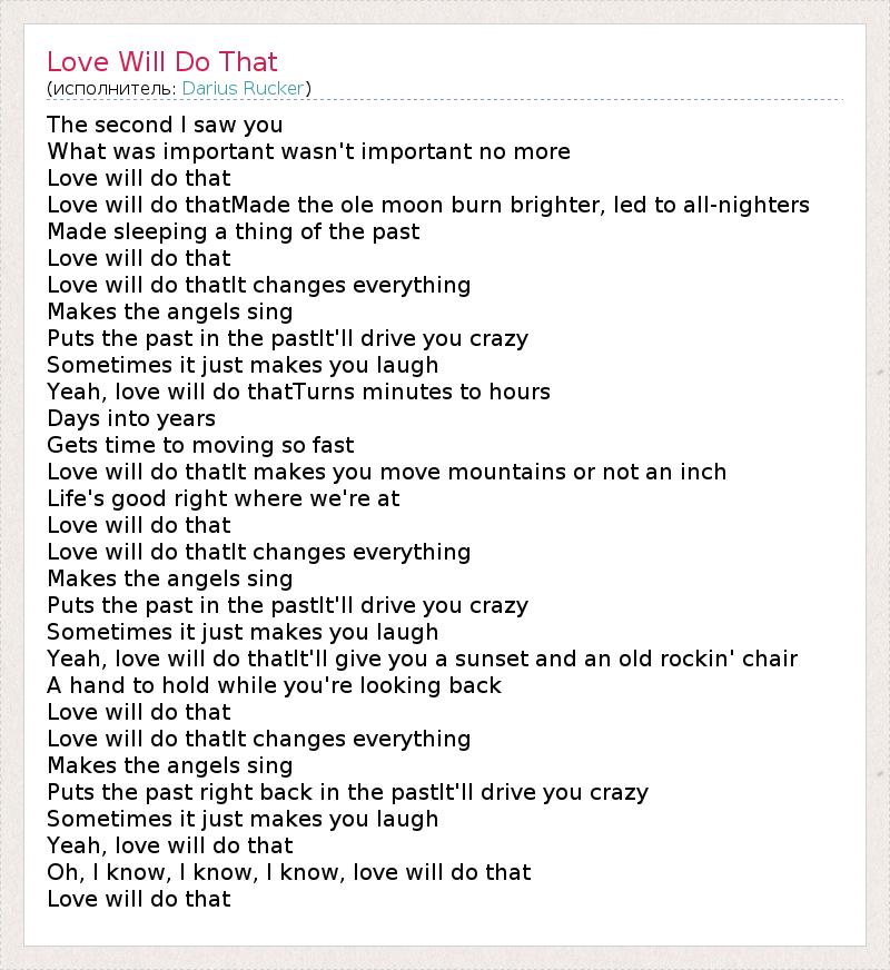 А как ты думаешь, о чем песня "Love Will Do That" ?