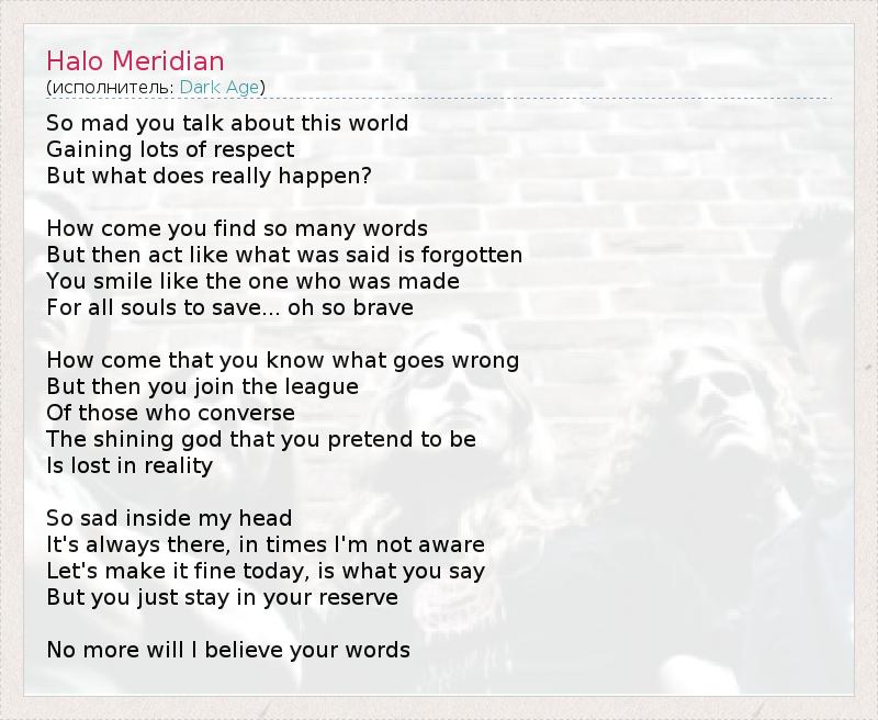 А как ты думаешь, о чем песня "Halo Meridian" ?