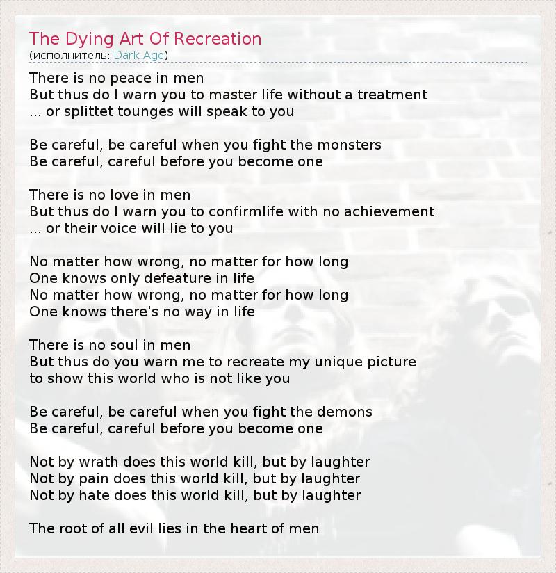 А как ты думаешь, о чем песня "The Dying Art Of Recreation" ?