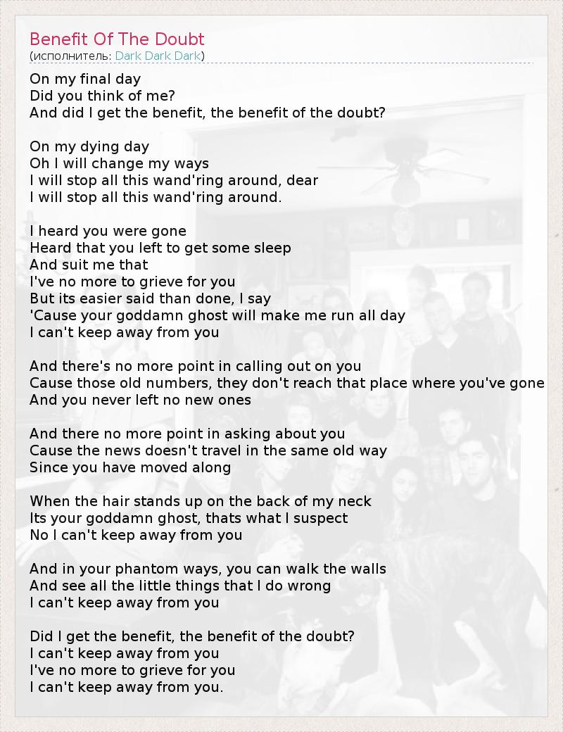 А как ты думаешь, о чем песня "Benefit Of The Doubt" ?