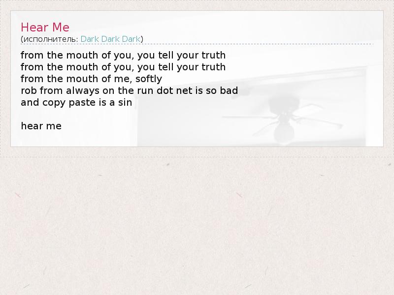 from the mouth of you, you tell your truth from the mouth of you, you tell your truth from the mouth of me, softly rob from always on the run dot net is so bad and copy paste is a sin hear me