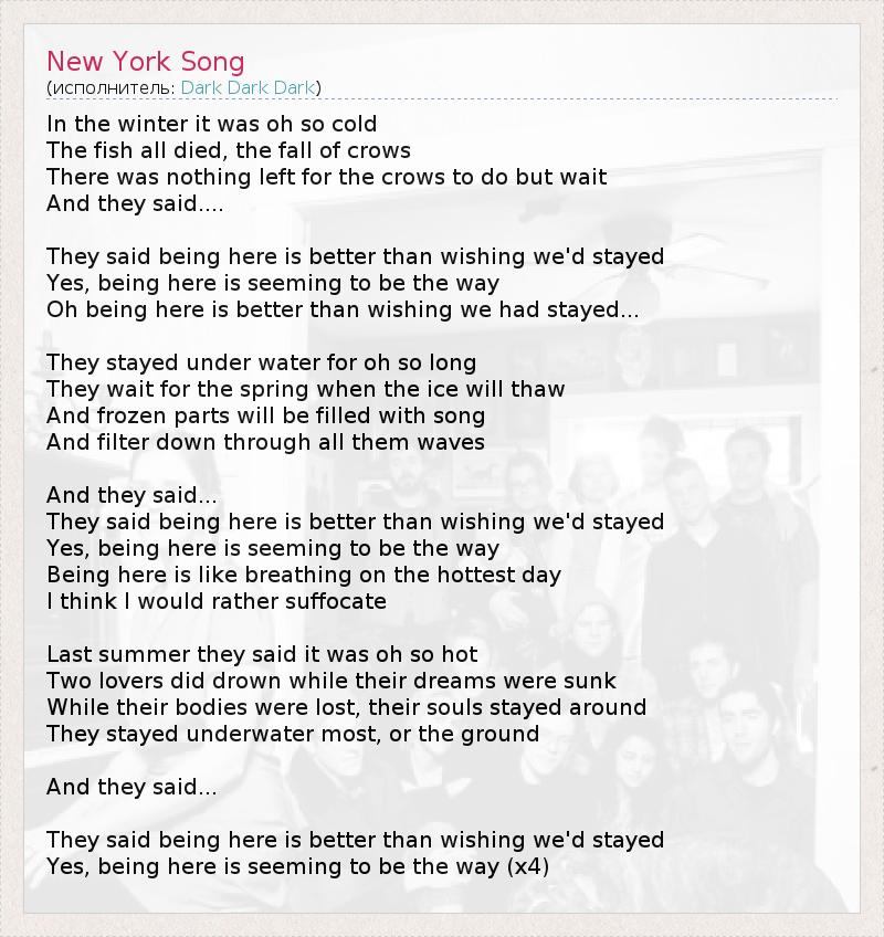 А как ты думаешь, о чем песня "New York Song" ?
