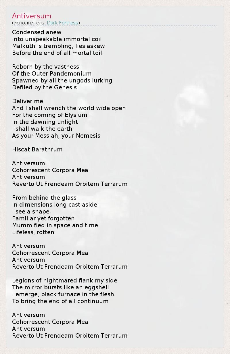 Это интересно:Dark Fortress — блэк-метал группа из Ландсхута, Германия, основанная в 1994 году. По сей день коллектив выпустил шесть студийных альбомов, одну демо-запись, а так же поучаствовали в создании сплит-альбома. Их последняя работа — Ylem — вышла в 2010 году. Из оригинального состава группы на сегодняшний день остался только гитарист Asvargyr, а в 2007 ее покинул до той поры бессменный... продолжение