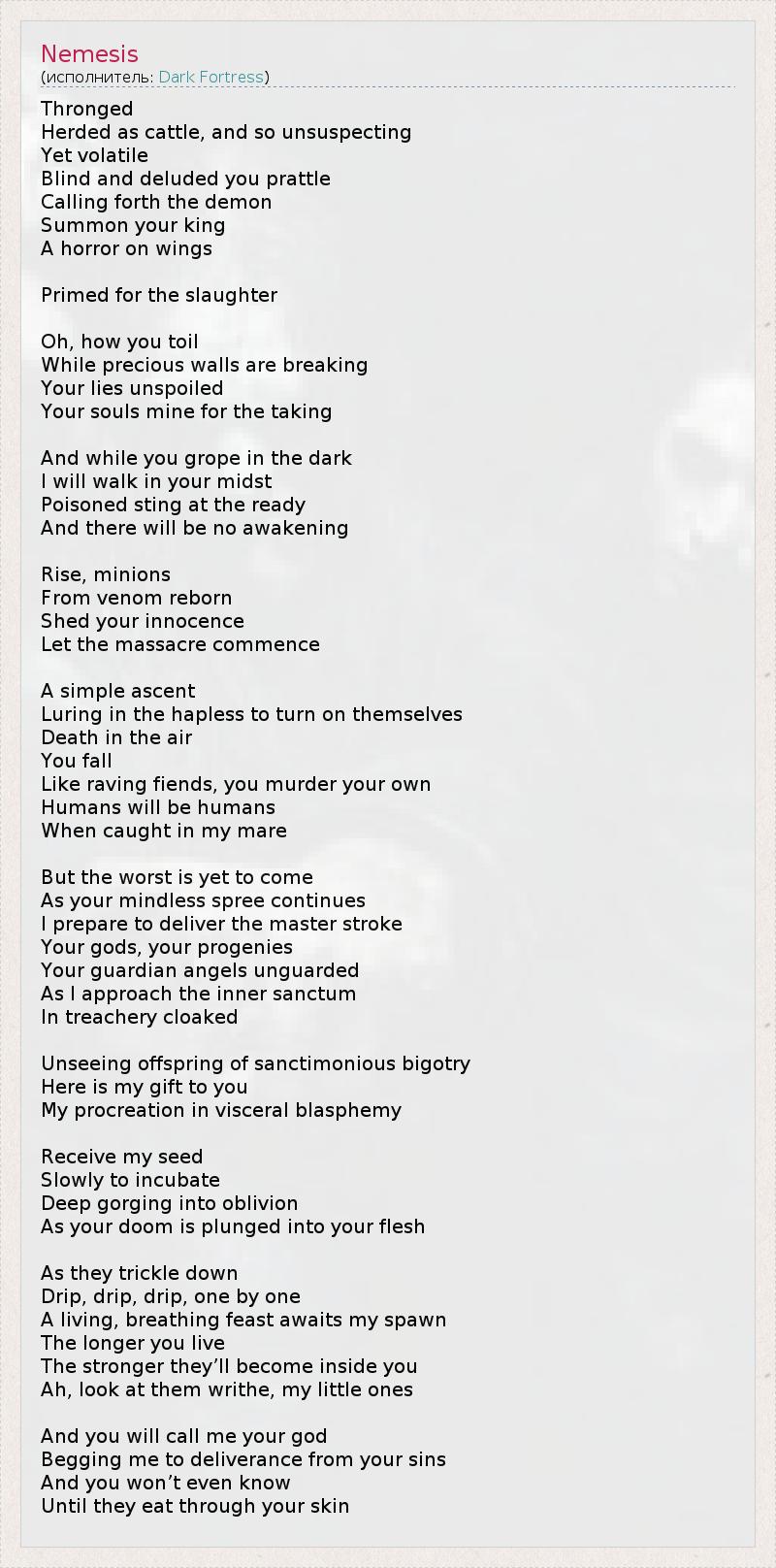 А как ты думаешь, о чем песня "Nemesis" ?