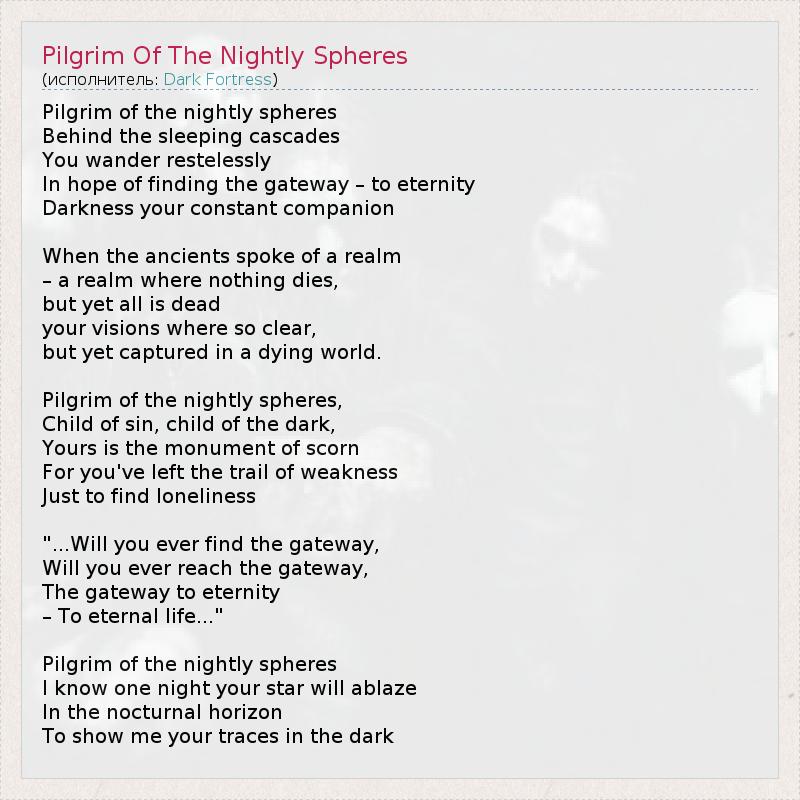 А как ты думаешь, о чем песня "Pilgrim Of The Nightly Spheres" ?