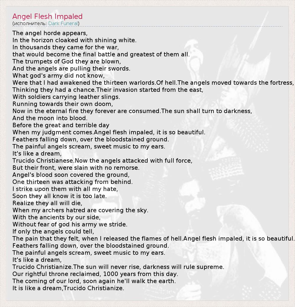 А как ты думаешь, о чем песня "Angel Flesh Impaled" ?