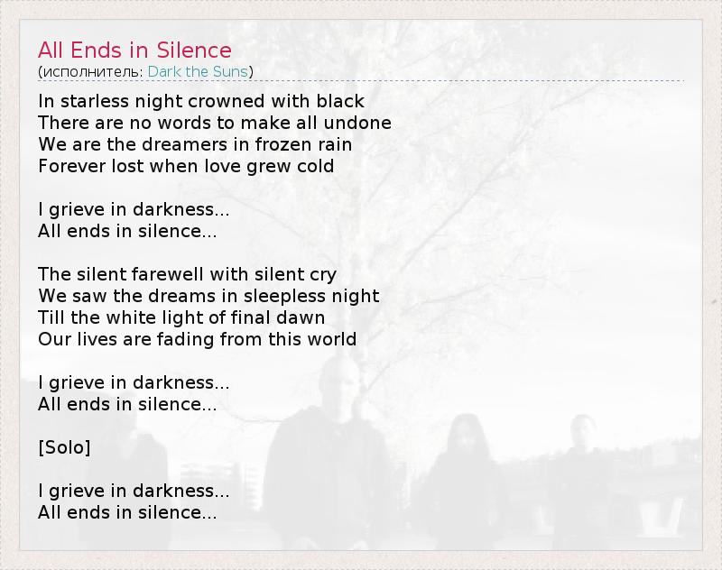 А как ты думаешь, о чем песня "All Ends in Silence" ?