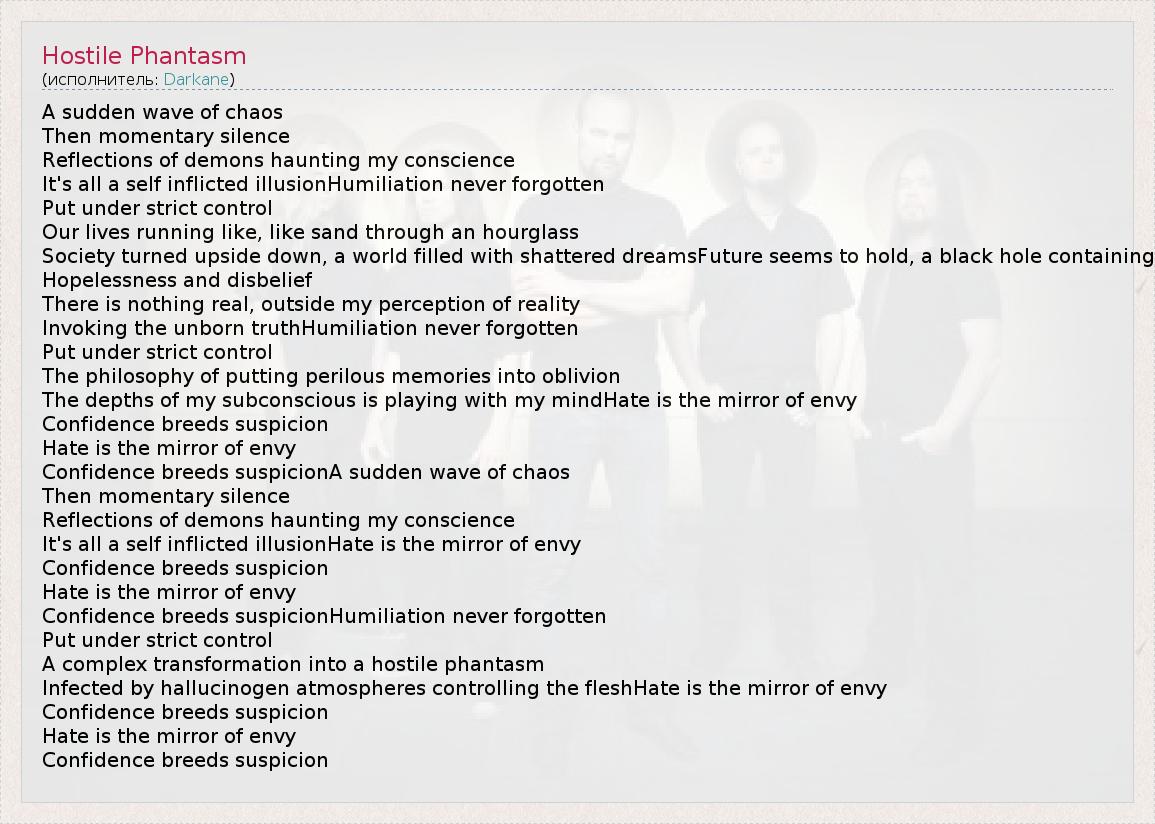 А как ты думаешь, о чем песня "Hostile Phantasm" ?