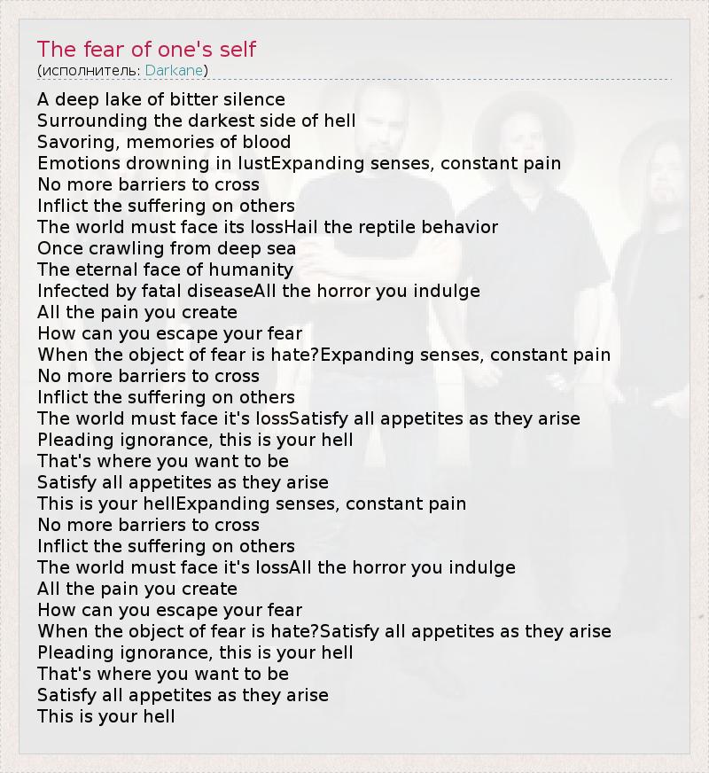 А как ты думаешь, о чем песня "The fear of one's self" ?