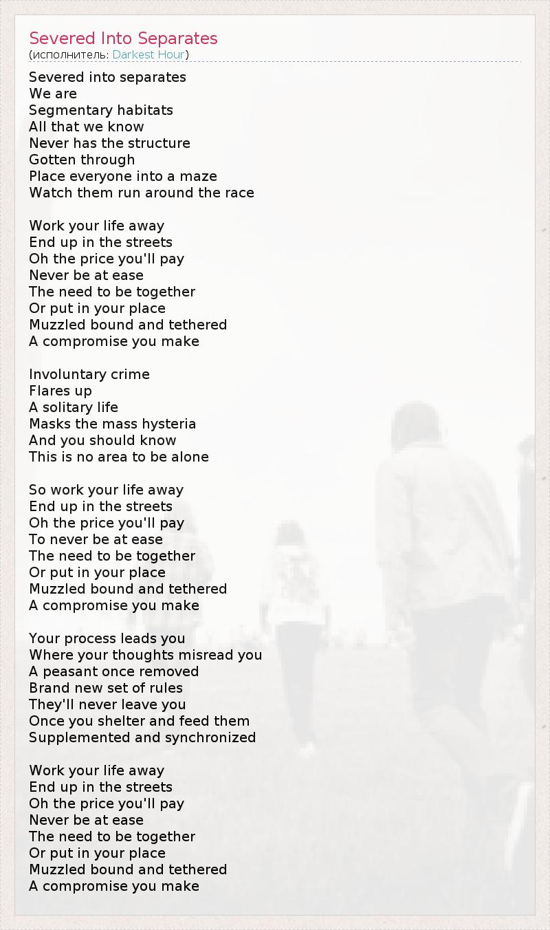 А как ты думаешь, о чем песня "Severed Into Separates" ?