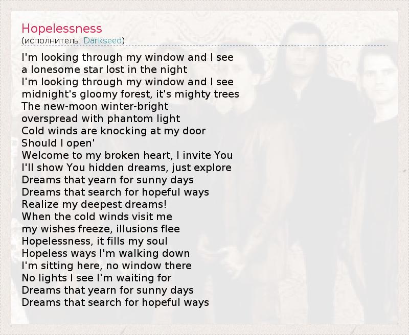 А как ты думаешь, о чем песня "Hopelessness" ?