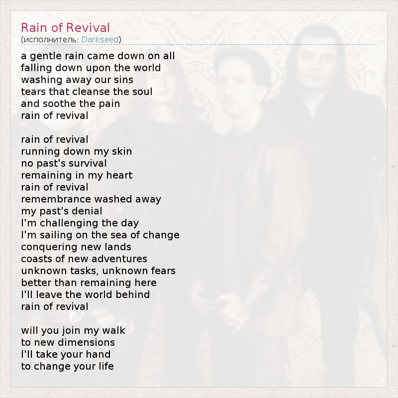 А как ты думаешь, о чем песня "Rain of Revival" ?