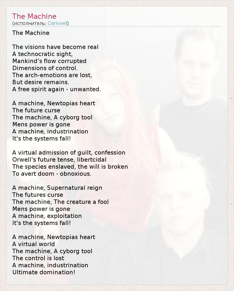 А как ты думаешь, о чем песня "The Machine" ?