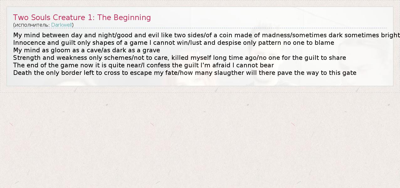 А как ты думаешь, о чем песня "Two Souls Creature 1: The Beginning" ?