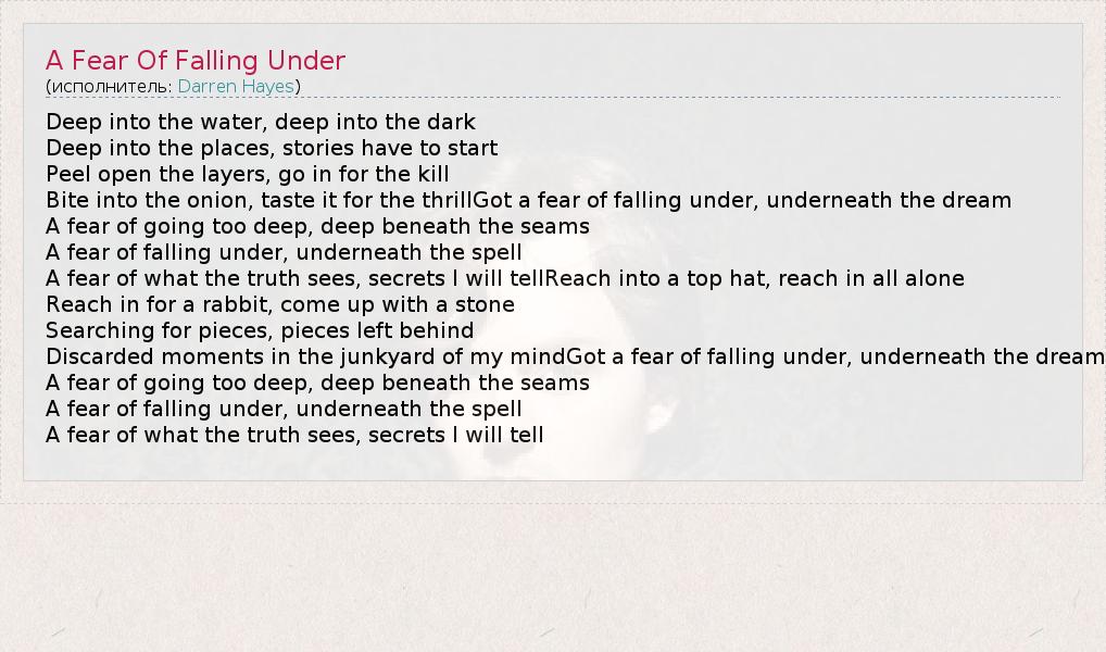 ГлавнаяИсполнителиDarren HayesA Fear Of Falling Under