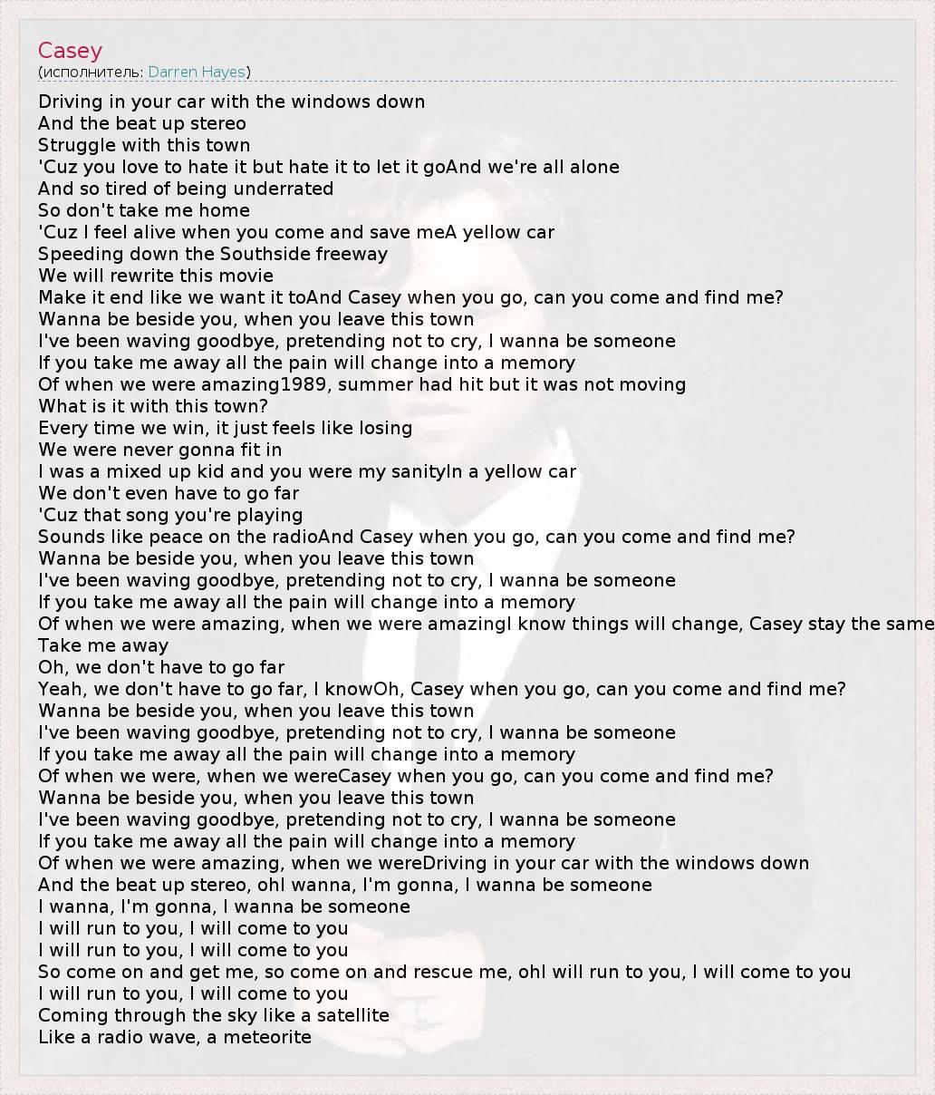 Make it end like we want it toAnd Casey when you go, can you come and find me?
