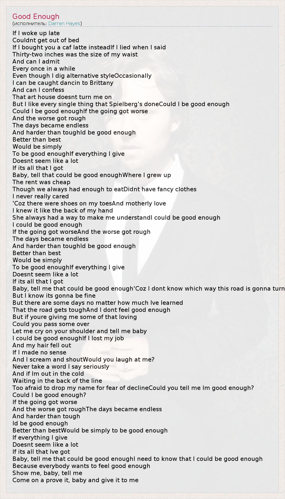 Baby, tell me that could be good enoughI need to know that I could be good enough