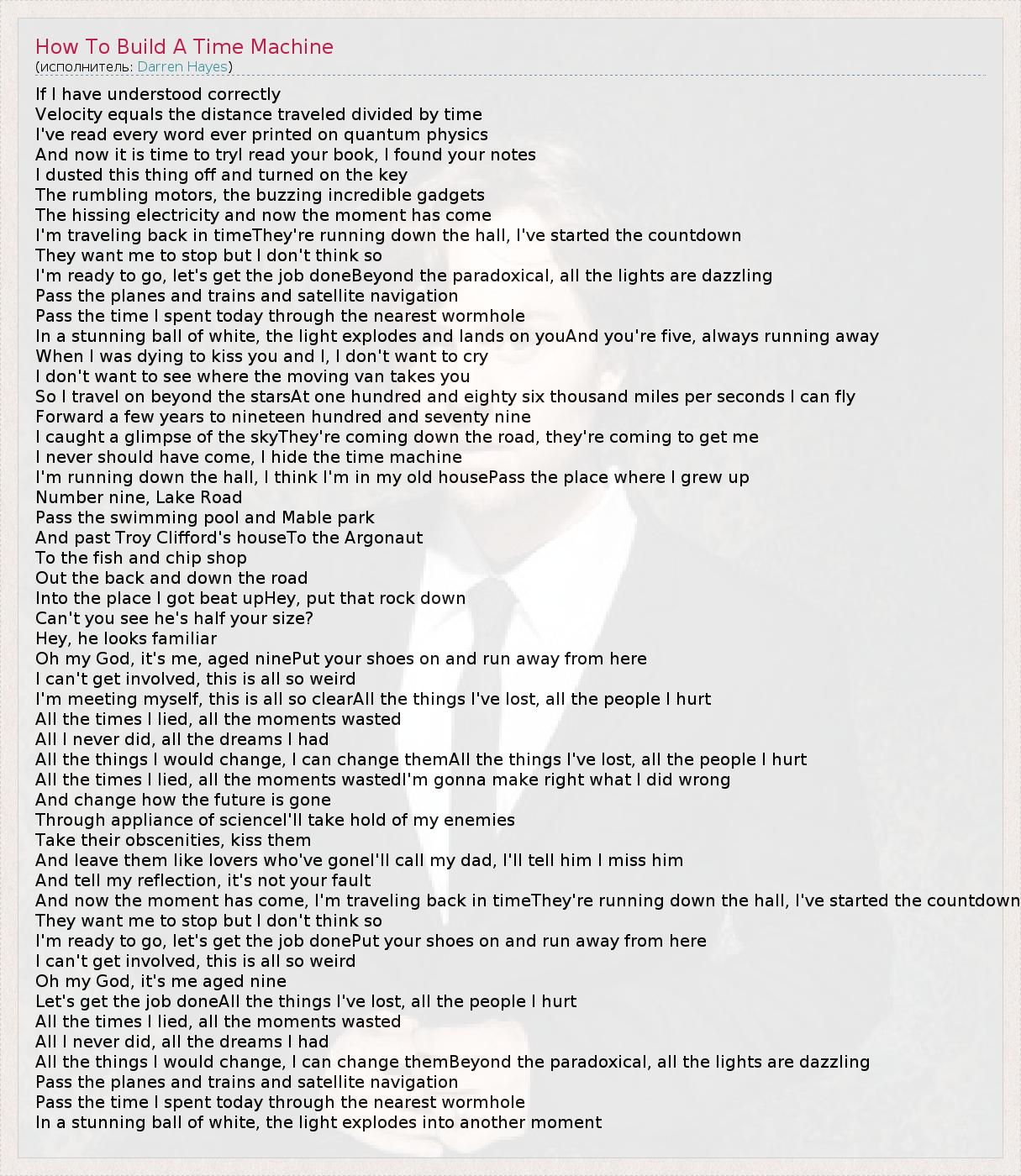 А как ты думаешь, о чем песня "How To Build A Time Machine" ?