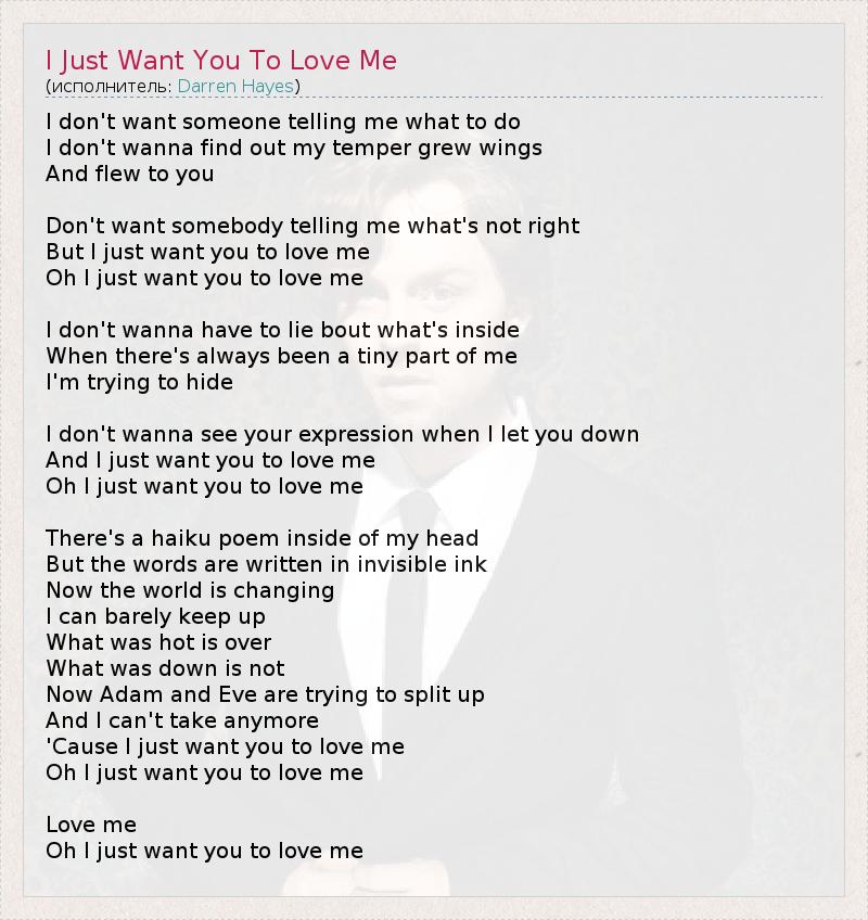 ГлавнаяИсполнителиDarren HayesI Just Want You To Love Me