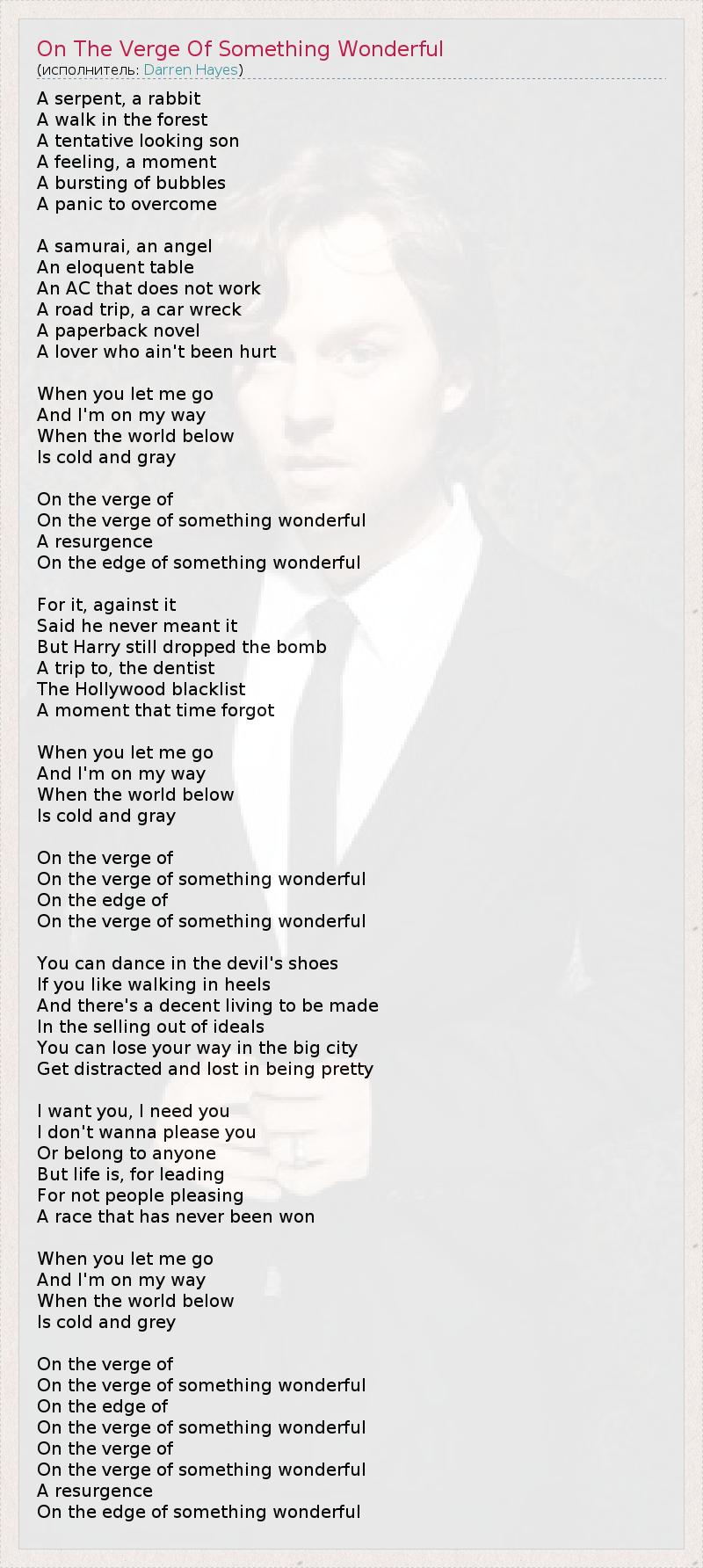 ГлавнаяИсполнителиDarren HayesOn The Verge Of Something Wonderful
