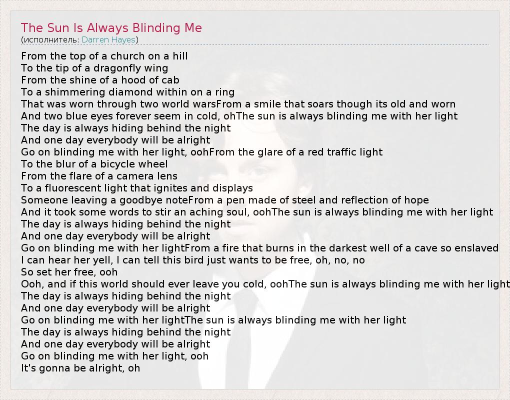 ГлавнаяИсполнителиDarren HayesThe Sun Is Always Blinding Me