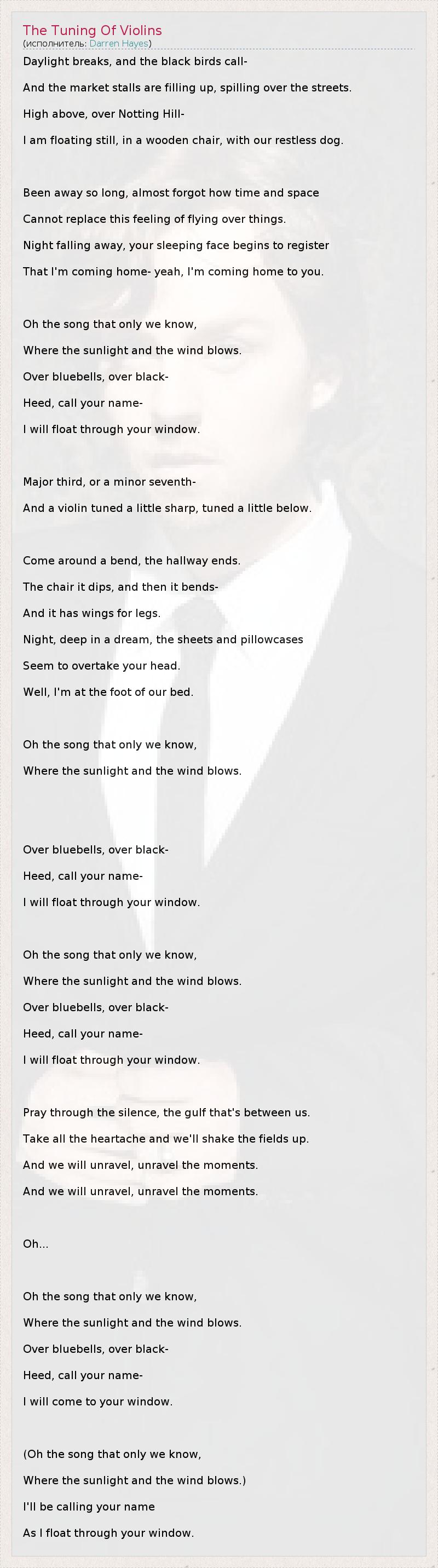 А как ты думаешь, о чем песня "The Tuning Of Violins" ?