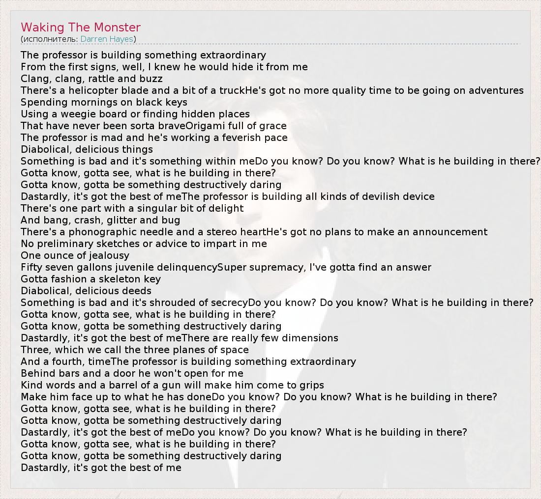 А как ты думаешь, о чем песня "Waking The Monster" ?