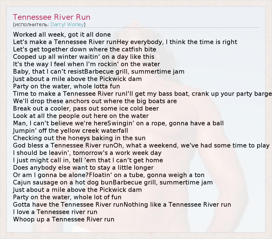 А как ты думаешь, о чем песня "Tennessee River Run" ?
