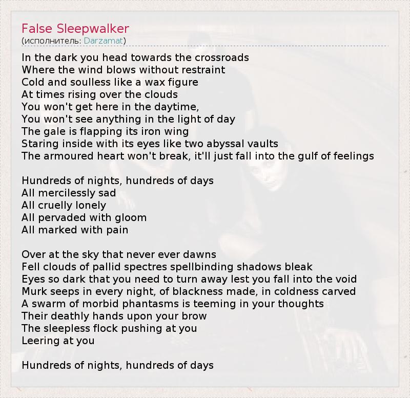 А как ты думаешь, о чем песня "False Sleepwalker" ?