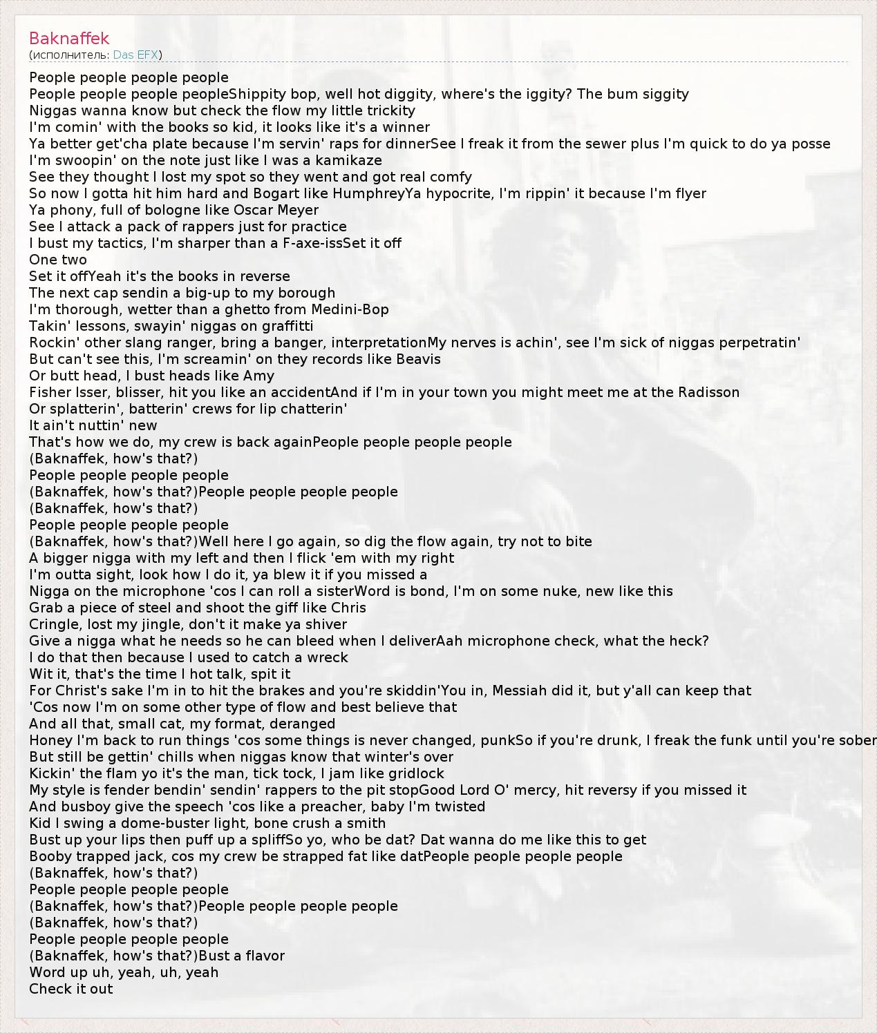 А как ты думаешь, о чем песня "Baknaffek" ?