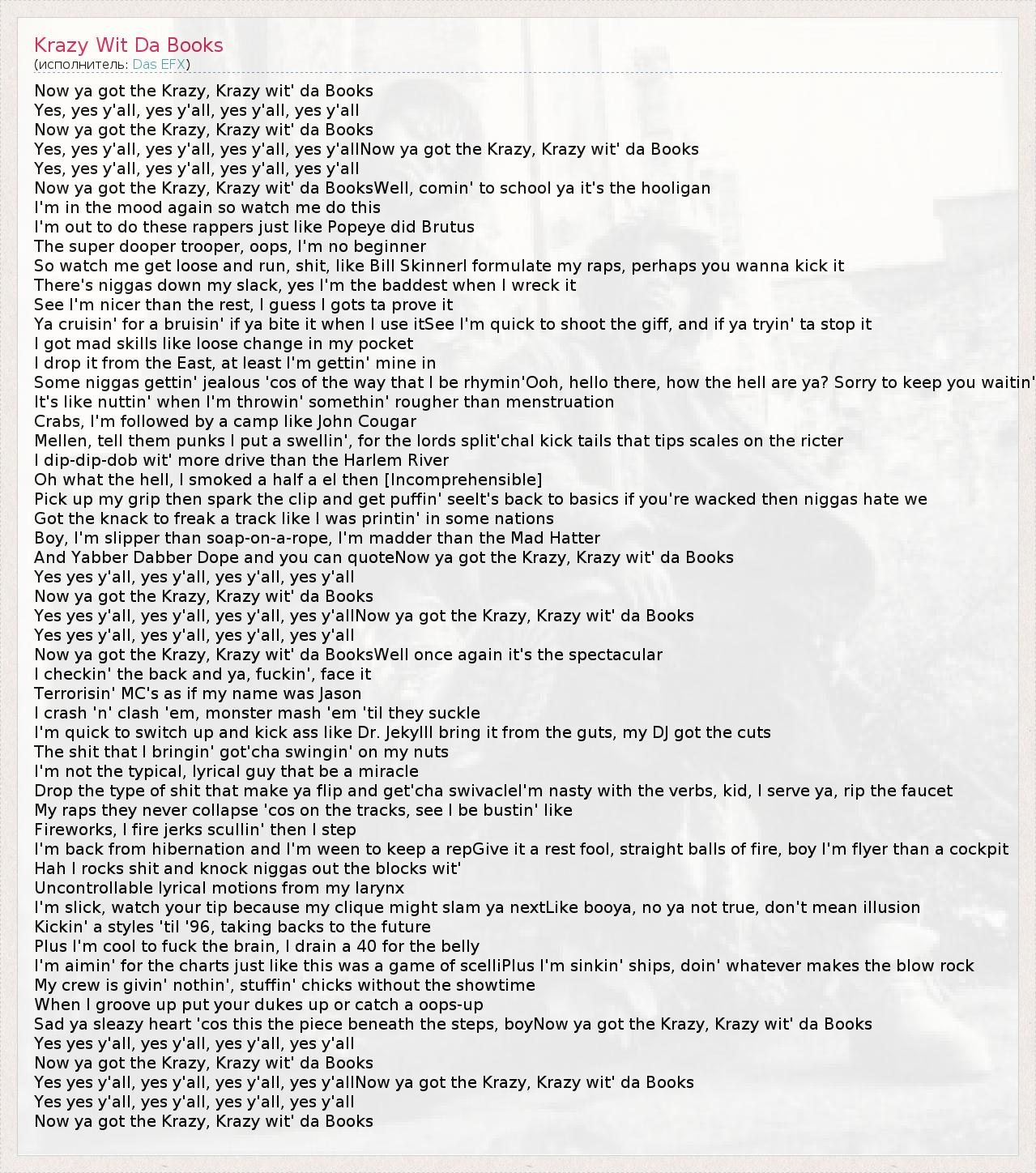 А как ты думаешь, о чем песня "Krazy Wit Da Books" ?