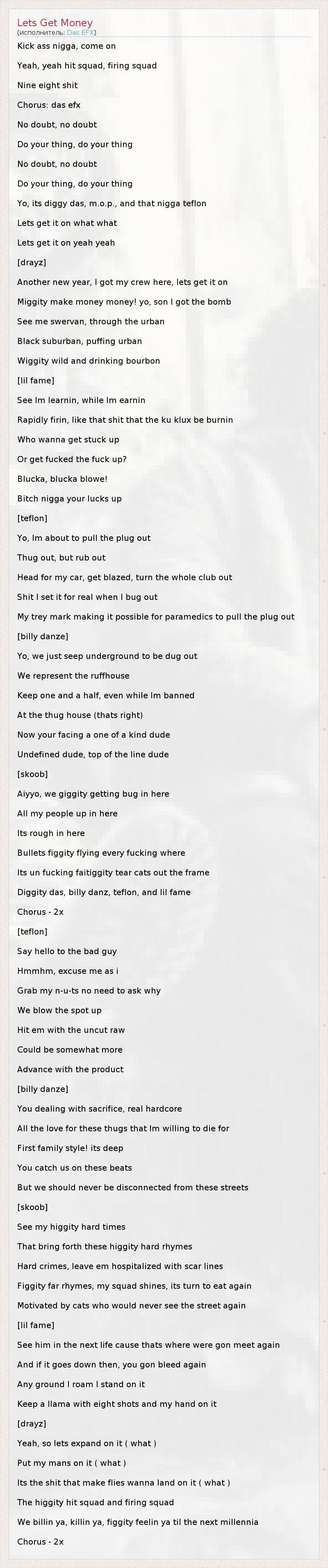 А как ты думаешь, о чем песня "Lets Get Money" ?