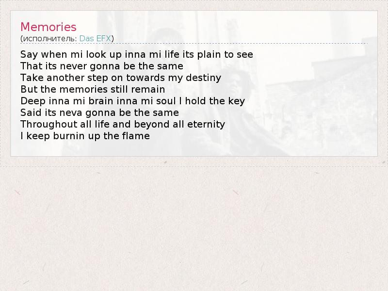 Это интересно:Das EFX - американская хип-хоп группа, в состав которой входят рэпперы Skoob (также известный под именем Books, настоящее имя которого Willie Hines, родился 27 ноября 1970 года) и Dre (также известный под именем Krazy Drayz, настоящее имя Andre Weston, родился 9 сентября 1970 года). Они стали популярными в начале 90-ых годов благодаря сотрудничеству с Hit Squad и своей лирической составляющей, что повлияло на лирику хип-хоп музыки... продолжение