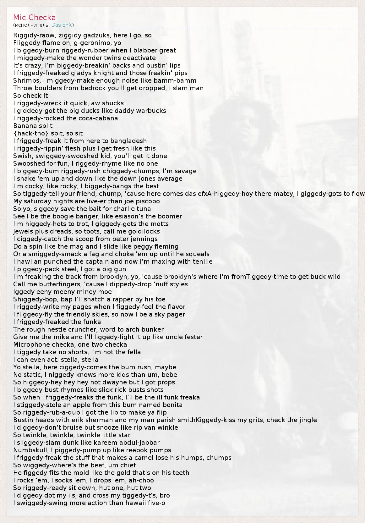 А как ты думаешь, о чем песня "Mic Checka" ?