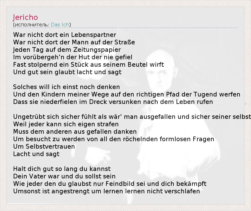 Это интересно:Das Ich — немецкая группа, играющая в стилях darkwave, industrial, EBM electro-gothic. Название Das Ich заимствовано из работ основателя психоанализа Зигмунда Фрейда (например Freud, Sigmund (1923), Das Ich und das Es) и тесно связано с термином Эго. Основной мотив творчества группы — экспрессионистские стихи, наложенные на электронную музыку. На концертах музыканты широко используют театральные приёмы, декорации, грим.Штефан... продолжение