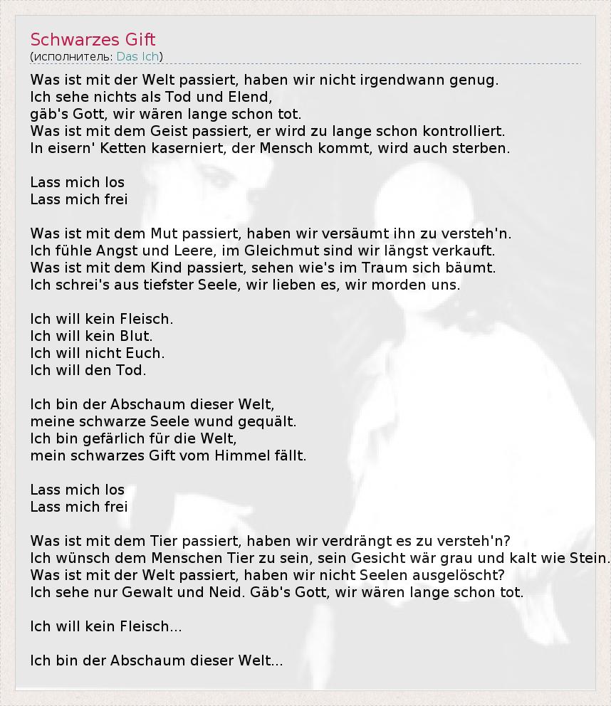А как ты думаешь, о чем песня "Schwarzes Gift" ?