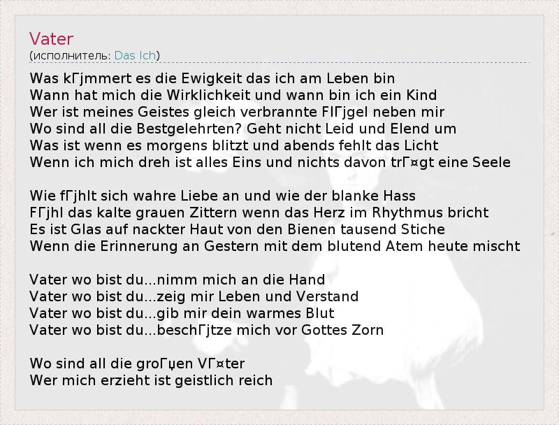 Was kГјmmert es die Ewigkeit das ich am Leben bin