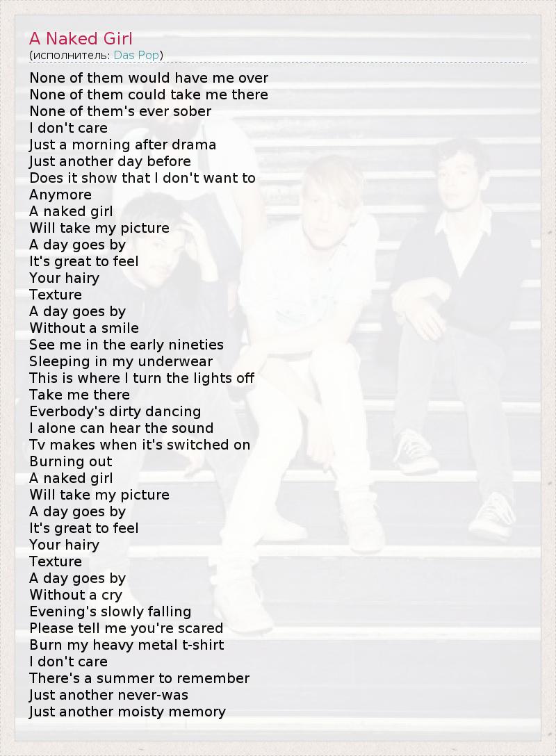 А как ты думаешь, о чем песня "A Naked Girl" ?