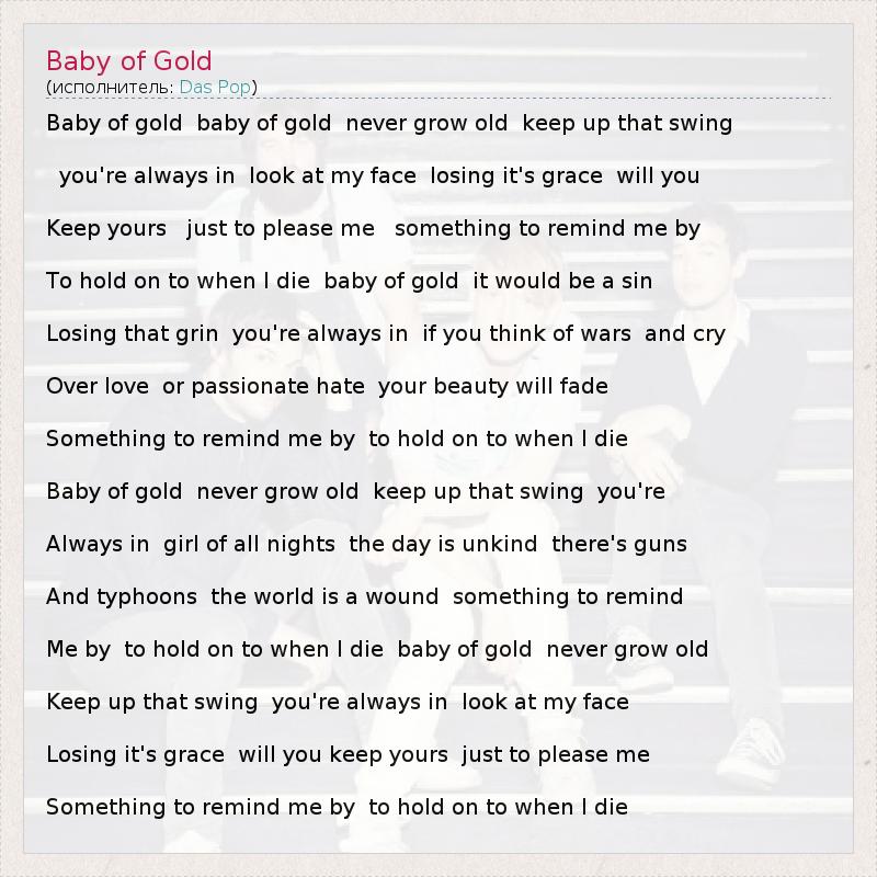 А как ты думаешь, о чем песня "Baby of Gold" ?