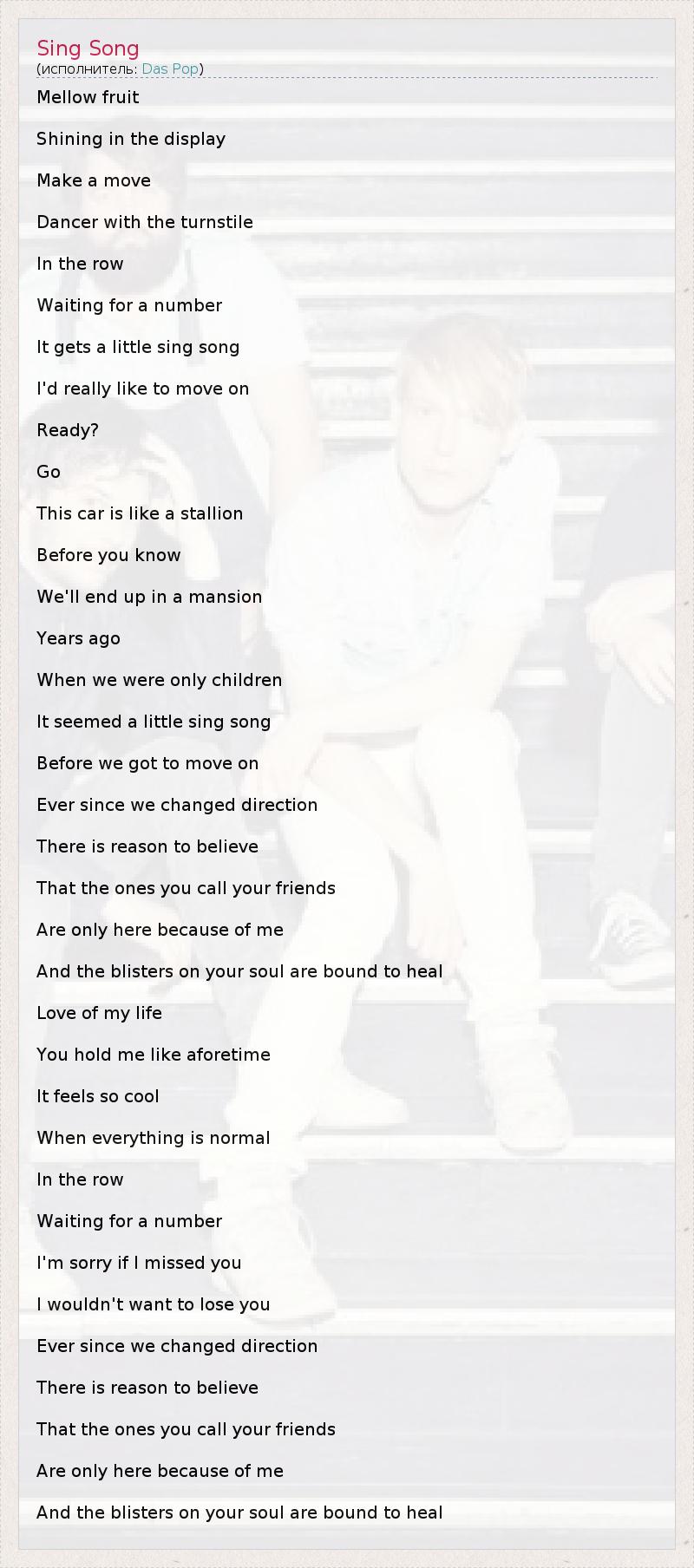 Это интересно:Das Pop - бельгийские ребята, играющие приятный уху инди поп рок c небольшой частичкой электроники. Группа была основана школьными друзьями: Рейнардом Ванберегном, Ником Меулом, Ливьеном Мурсом и Бентом Ван Лу. Сначала они назывались Things to Come, но когда в группу пришел Том Кестенс, то группу переименовали в Das Pop. В 2003 Das Pop выпускают альбом The Human Thing. В 2007 Том Кестенс и Ливьен Мурс покинули группу.... продолжение