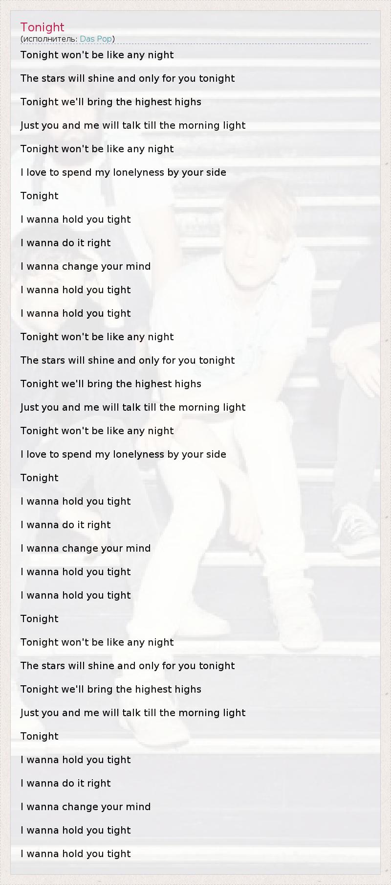 А как ты думаешь, о чем песня "Tonight" ?
