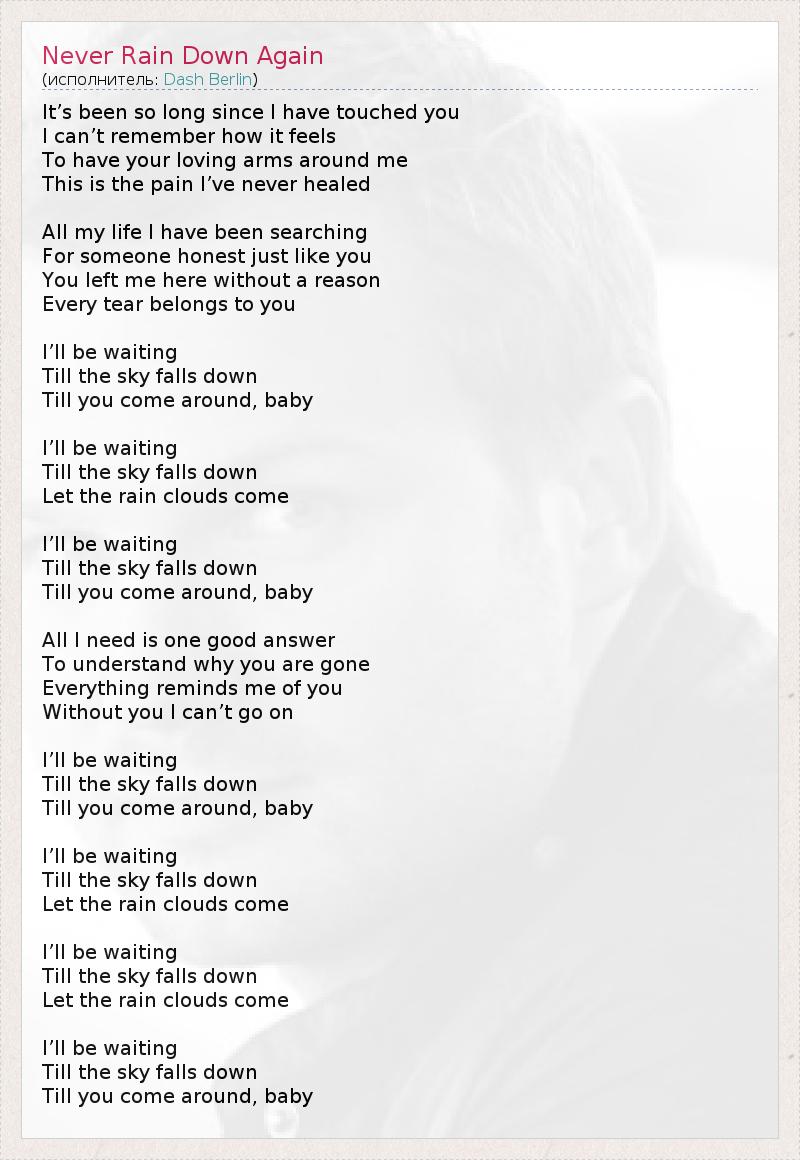 А как ты думаешь, о чем песня "Never Rain Down Again" ?