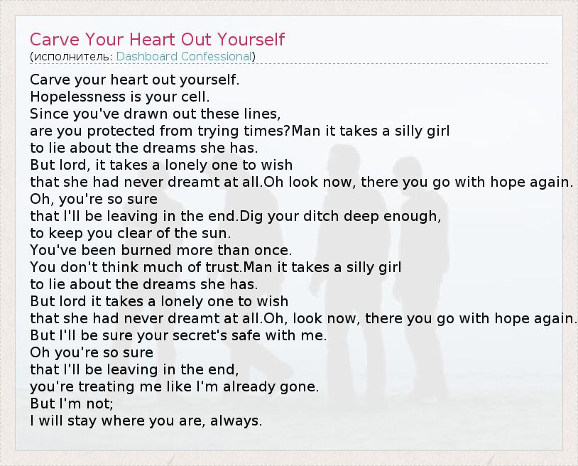 А как ты думаешь, о чем песня "Carve Your Heart Out Yourself" ?