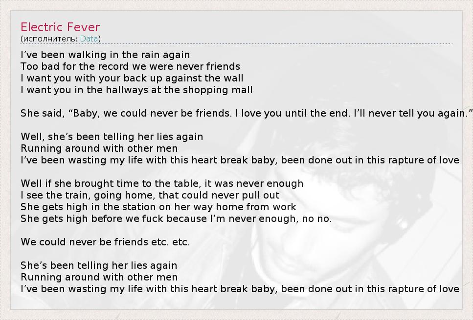 А как ты думаешь, о чем песня "Electric Fever" ?