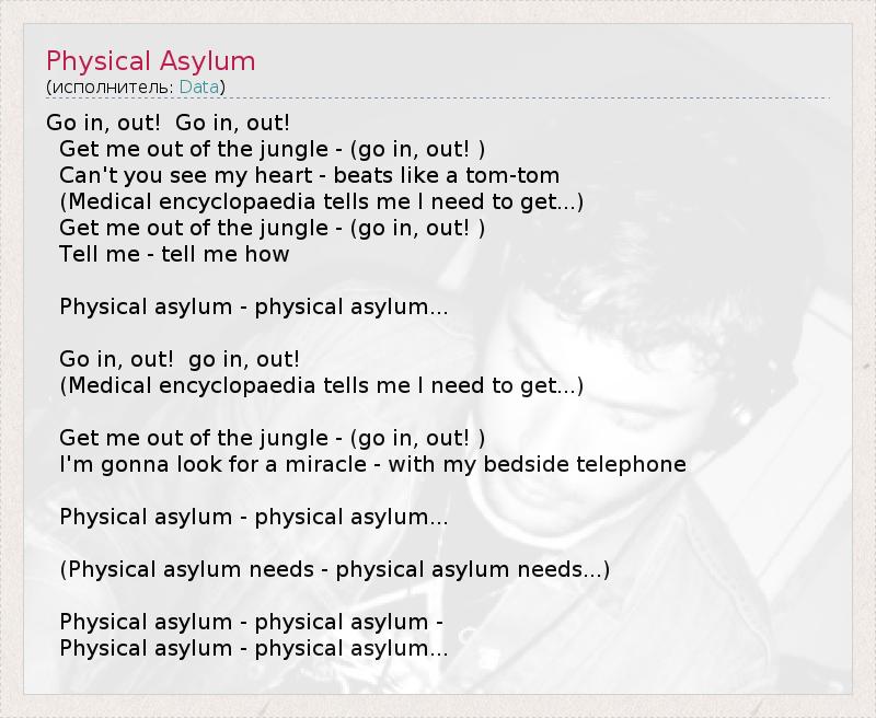 А как ты думаешь, о чем песня "Physical Asylum" ?