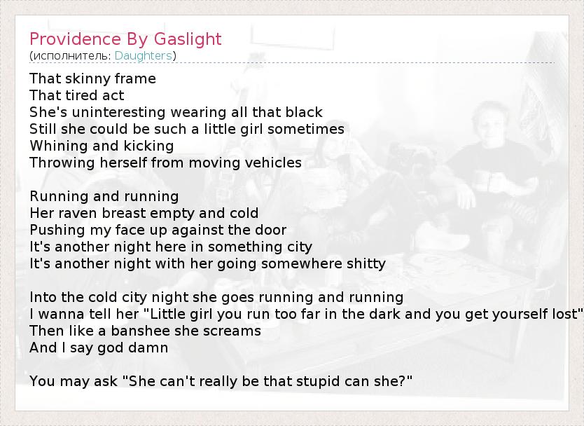А как ты думаешь, о чем песня "Providence By Gaslight" ?