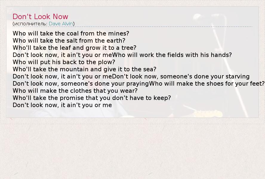 А как ты думаешь, о чем песня "Don’t Look Now" ?